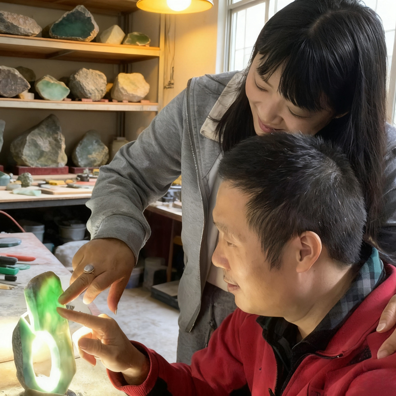 When Jillian entered his life, she became not only his deepest love but also his most perfect partner in purpose. Together, they founded Konlace, transforming a heritage of craftsmanship into a modern legend—a testament to a couple sculpting their life and business, side by side.He is the quiet Creator, using his tools to awaken the essence of the earth, slumbering for eons. She is the warm Connector, bringing this unique beauty, condensed from time itself, to those around the world who will cherish it.