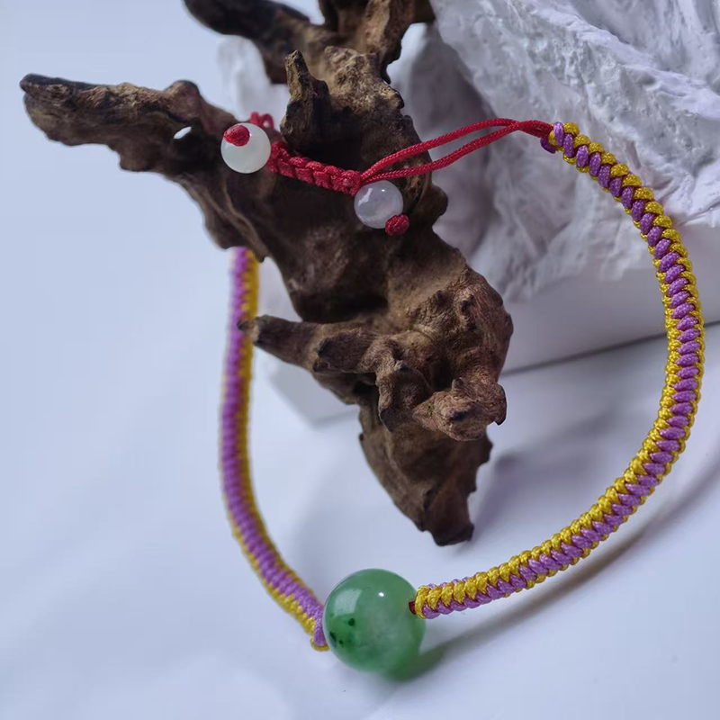 Handwoven Apple Green Jadeite Bracelet | Woven Harmony & Natural Vitality