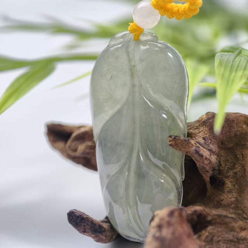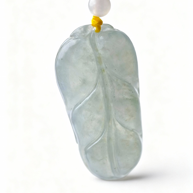 Ice-Type Jadeite Leaf Pendant | Clarity & Growth Talisman