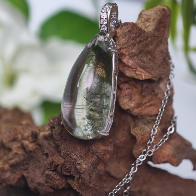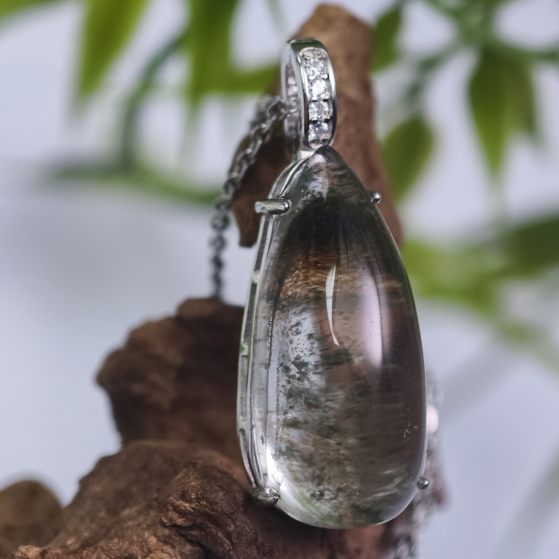Petite Green Phantom Quartz Teardrop Pendant | Concentrated Prosperity & Precision Manifestation